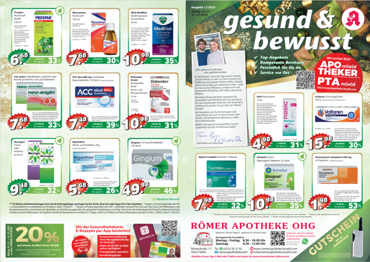 Wir stehen Ihnen als Experten der Pharmazie bei allen Fragen rund um Ihre Gesundheit und Ihr Wohlbefinden zur Seite – ganz individuell und auf Ihre Bedürfnisse zugeschnitten. Unser vielseitiges Leistungsangebot reicht von einer kompetenten Beratung und einer umfassenden Versorgung mit Medikamenten über zahlreiche ergänzende Gesundheitsangebote bis hin zu attraktiven und abwechlungsreichen Aktionen. Informieren Sie sich auf unserer Website oder besuchen Sie uns direkt vor Ort. Wir freuen uns auf Sie!